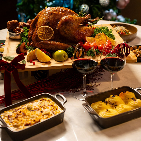 اجتمعوا مع أفراد العائلة والأحبة والأصدقاء لتناول أشهى غداءٍ احتفالاً بعيد الميلاد، مع تشكيلة غنية من الأطباق الموسمية والحلويات اللذيذة المُمتعة.