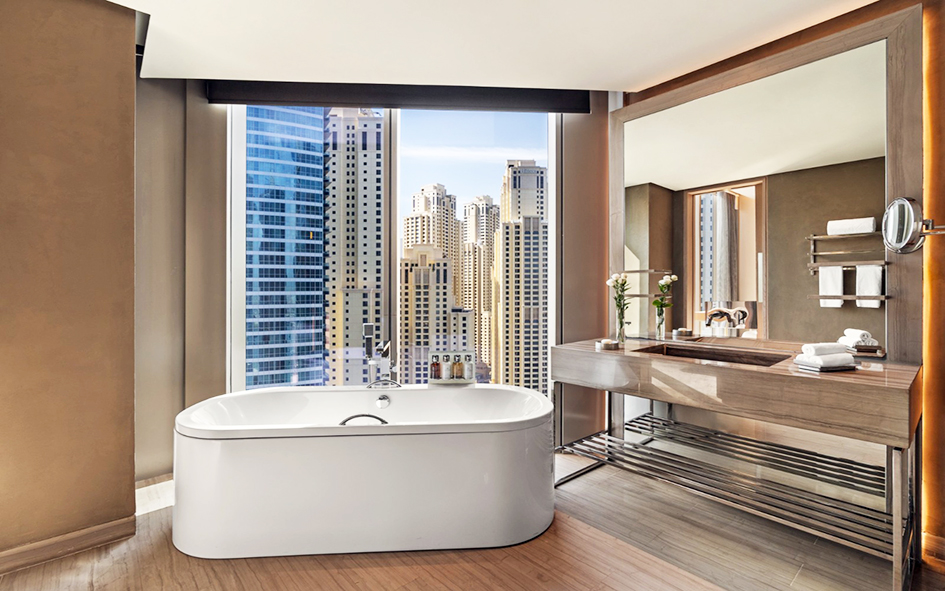 يستأثر الفندق بإطلالات بانورامية خلابة على الخليج العربي وعين دبي ويعتبر وجهةً آسرة تتيح التعرف على الشواطئ الذهبية والأماكن الخلابة وأسلوب الحياة النابض بالحيوية في الإمارة، ويمتد على مساحة 35 طابقاً ويضم 414 غرفة وجناحاً أنيقاً، ما يضمن وجود ما يناسب جميع الأذواق. سيحظى الضيوف بفرصة الإقامة في واحدة من غرف ديلوكس أو بريميوم الفخمة والمثالية لقضاء إجازة رومانسية، أو التمتع برفاهية لا تضاهى بحجز الجناح المميز المكوّن من غرفتي نوم لتجربة إقامة لا مثيل لها.