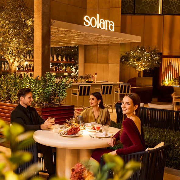 This Christmas, Solara at Address Dubai Mall invites guests to celebrate the magic of the season with an elegant Christmas Eve Dinner that blends festive warmth with contemporary sophistication. With the glittering city skyline as its backdrop, Solara transforms into a refined haven for a celebration to remember.