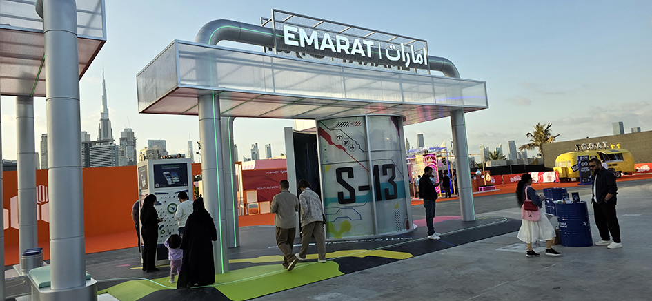 - Emarat Station – “100 Years Forward”: A futuristic reimagining of a petrol station, complete with a 360° video booth, a gamified loyalty activation, and stylised fuel-dispenser installations.