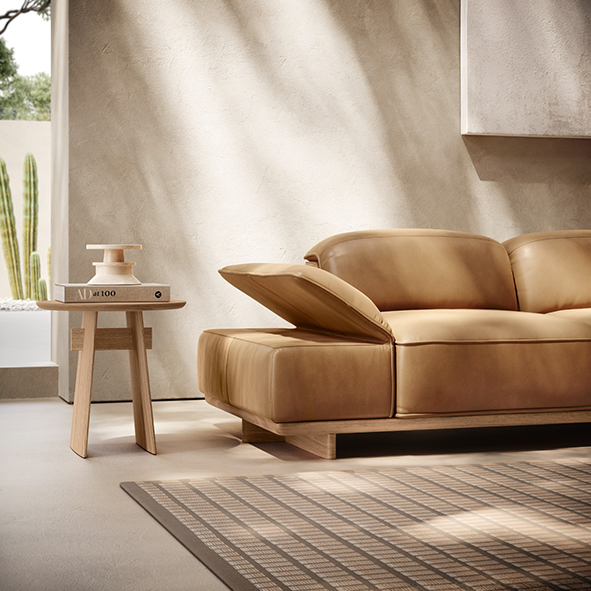 The Adam collection by Natuzzi blends Mediterranean soul with sustainable innovation. The Adam Sofa, inspired by Puglia’s timeless lifestyle, combines natural materials with modern casual design for ultimate comfort. Its handcrafted wooden base, plush Ecolympha cushions, and adjustable armrests and headrests redefine relaxation.