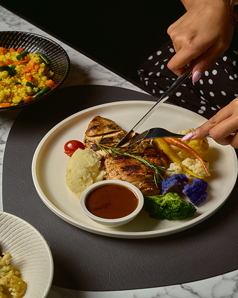 The specially curated Iftar menu brings together exquisite Arabic classics and distinctive Ramadan flavours. Begin your fast-breaking ritual with traditional refreshments such as Tamr Hindi, Qamar Al Din, and Karkade, followed by a generous selection of fresh and oriental salads. Guests can then indulge in live culinary stations, including a Mixed Grill featuring Shish Touk and Lamb Kofta, a carving station with traditional Ozi, and a fried mezze counter serving meat kibbeh, fatayer, and potato tajine. The main course selection further delights with Kebabs Halla, grilled beef steak, Fish Harra, and aromatic Chicken Biryani.