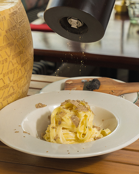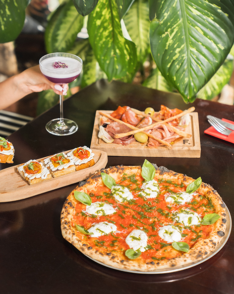 Foodies can start light with Franky’s delish Truffle Arancini (that ooze in all the right ways), then move on to indulgent mains like the Diavola Pizza or Pollastrella & baked Eggplant Parmigiana, hot from the oven and served with a side of skyline views.