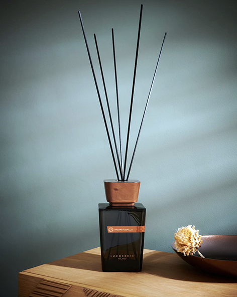 Locherber Habana Tobacco Diffuser blends honey, bergamot, and Caribbean tobacco with warm woody undertones in homage to Cuban heritage. Part of the Skyline collection, it features a handcrafted glass bottle with a meticulously hand-painted Ashwood lid, making it an ideal choice for lovers of refined ambiance.