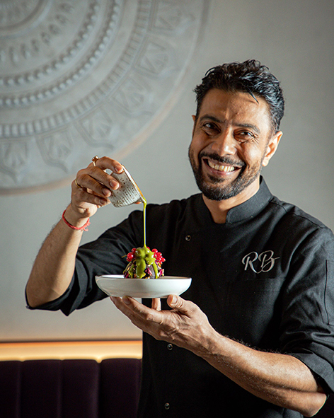 Designed as a “House of Stories,” Kissaghar is adorned with a series of unique installations and spatial elements personally conceptualized, designed and installed by Chef Brar, inspired by his travels and the narratives that have shaped his culinary and cultural vision. Guests will encounter larger than life Mandalas, Lippan art panels, a majestic Banyan tree, and walls evoking the historic Dargahs, each detail reflecting a harmonious blend of heritage, artistry, and innovation. This carefully crafted environment celebrates community, dialogue, and shared experiences, where Indian culture converges with Dubai’s cosmopolitan spirit.