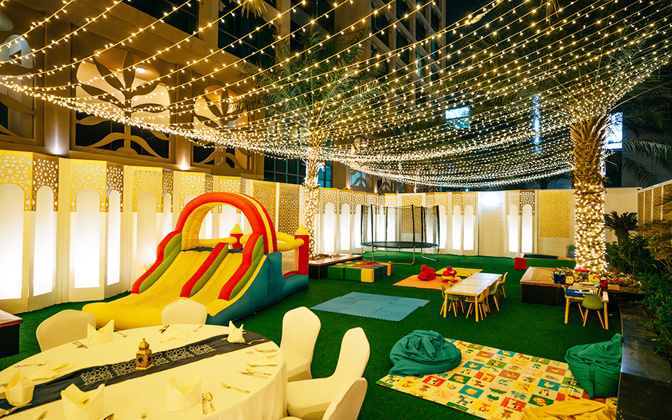 Families can enjoy a dedicated kids’ play area, while gentle live traditional entertainment and the soulful sounds of an Oud player create a warm, festive Ramadan atmosphere. With elegant modern Arabic design, a welcoming outdoor-inspired setting, and thoughtful hospitality, Layali Haritna is the perfect destination for family gatherings, corporate Iftar events, and group Suhoor bookings in Abu Dhabi.