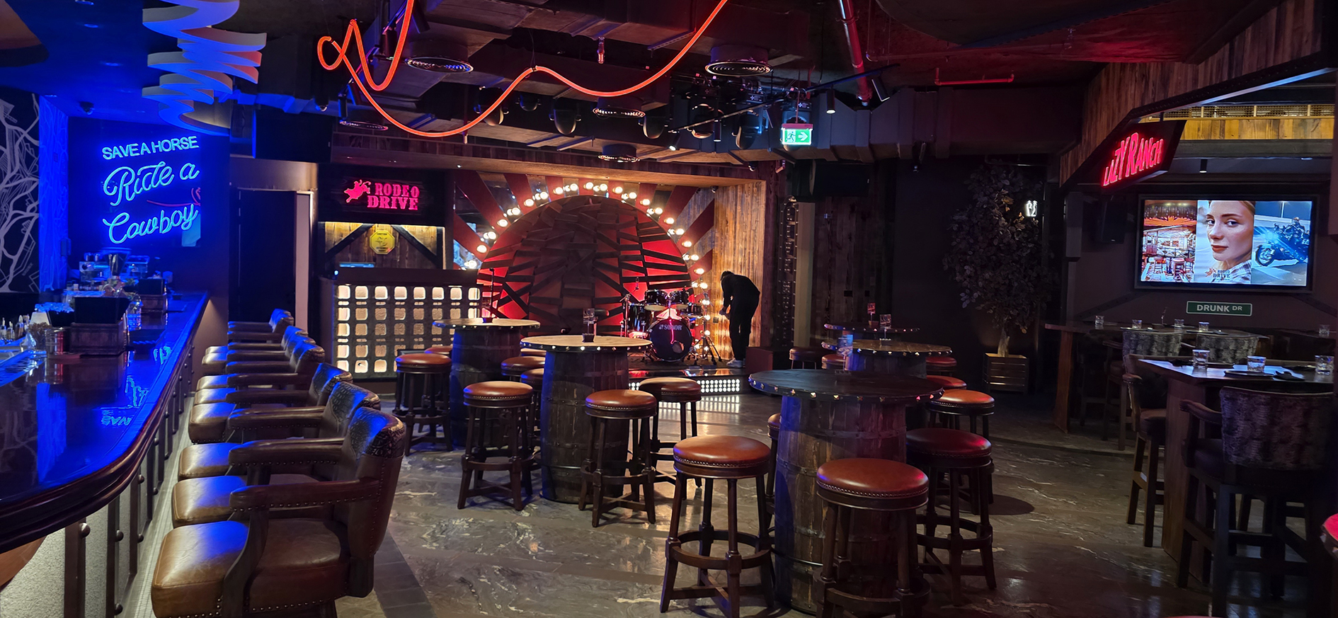 Spanning an expansive venue, Rodeo Drive is thoughtfully divided into multiple themed zones, each offering a distinct atmosphere — from Wild West-inspired dining spaces to interactive gaming areas, a mechanical bull arena and live performance stages. The result is a vibrant, multi-sensory setting that keeps energy levels high from afternoon through late evening.