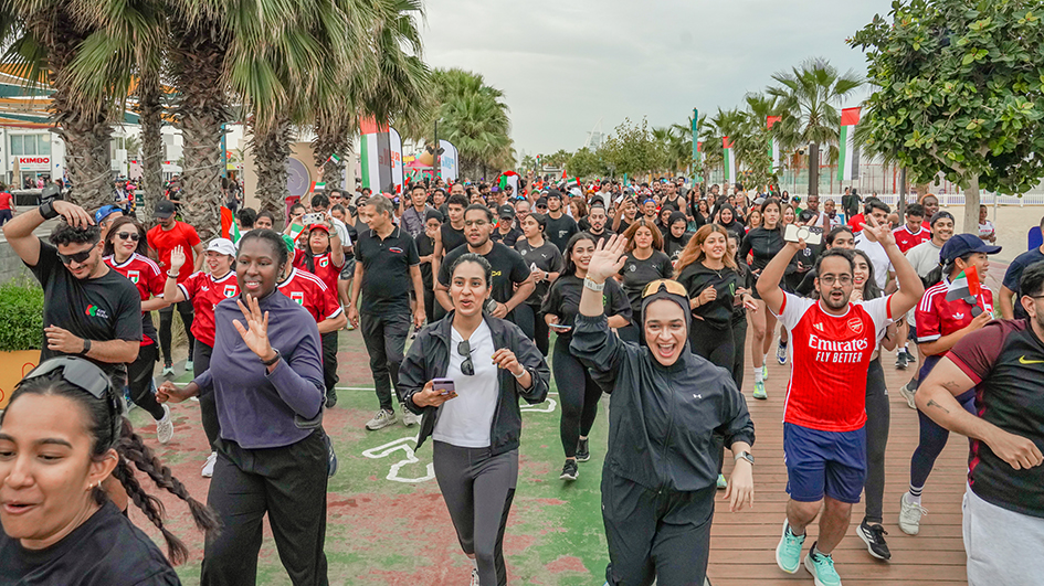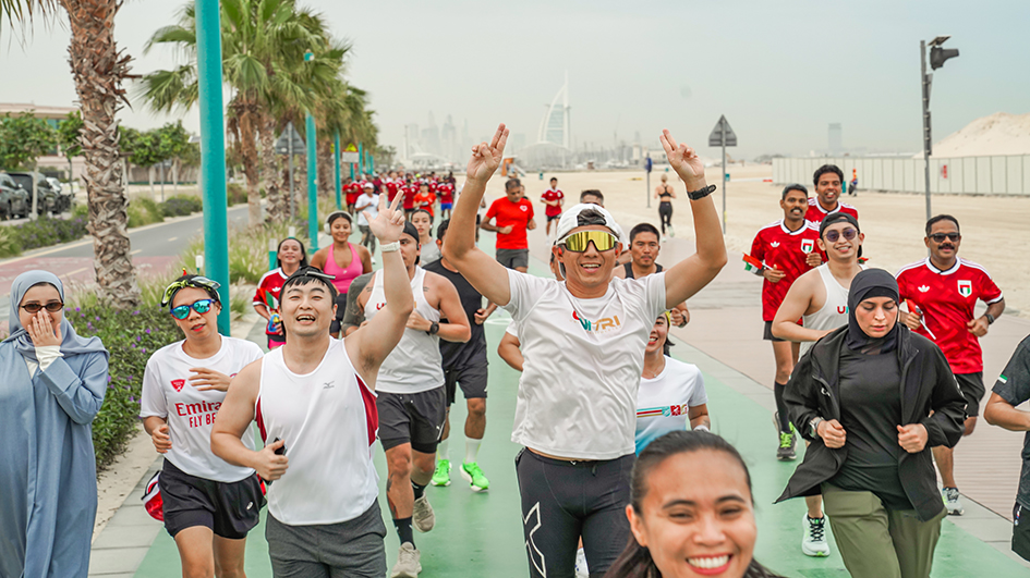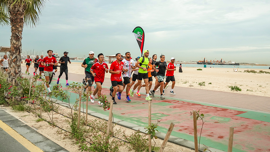 During Run _Image 4: The UAE flag moved through the route as part of a wider display of solidarity during the run at Kite Beach Dubai.