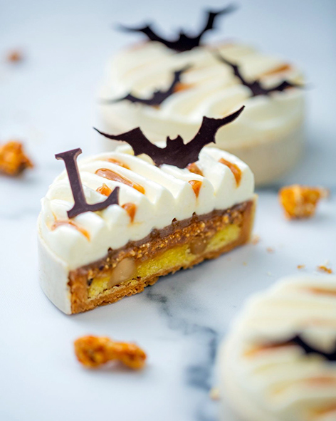A wickedly indulgent creation with sweet dough, almond popcorn cream, macadamia nuts, roasted corn praline, miso caramel popcorn, and whipped popcorn ganache, the ultimate balance of crunch, creaminess, and cinematic fun.