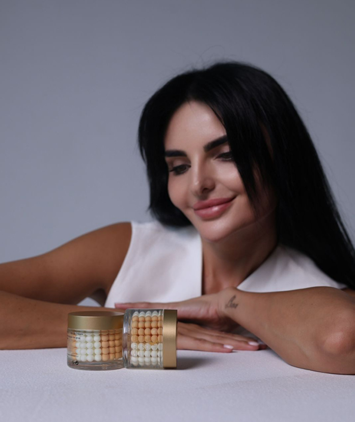 Blending Korean skincare innovation with Elena’s meticulous attention to detail, the Glowing 3D Capsule Cream features three unique types of capsules suspended in a luxurious gel base, wrinkle-clearing capsules, skin-strengthening capsules, and ultra-hydrating capsules. Each element, from the texture to the formulation, was personally tested and approved by Elena during months of development in Korea.